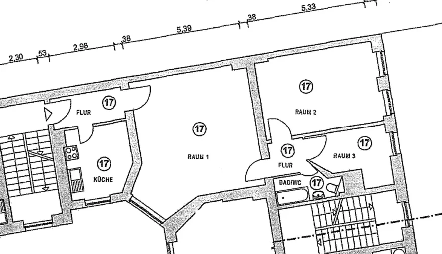+ ca. 77 m² Wohnfläche, 3 Zimmer, 2. Etage im ruhigen Seitenflügel