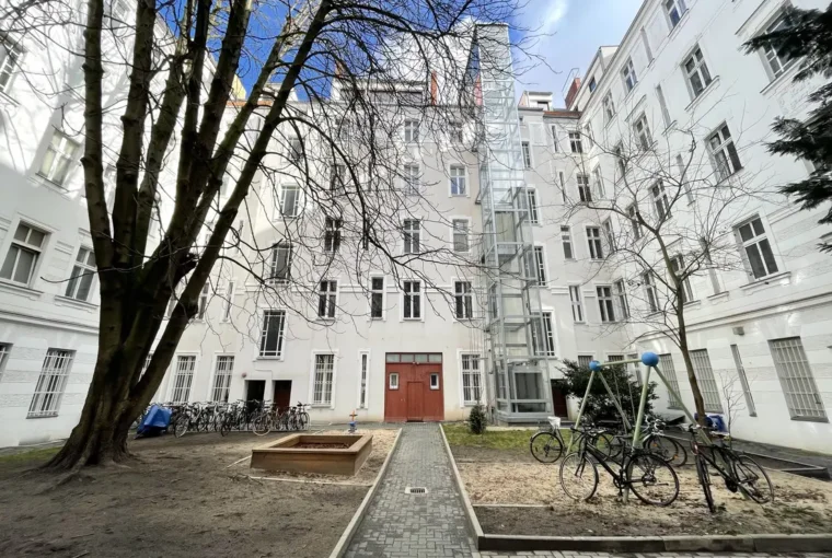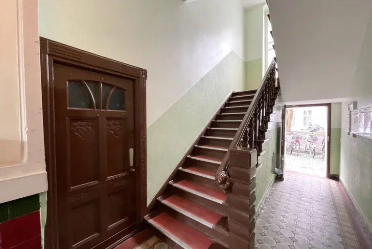 Die Wohnung befindet sich in der ersten Etage des ruhigen Seitenflügels und profitiert von einer angenehmen Wohnlage mit viel Tageslicht – ein typisches Merkmal Berliner Altbauarchitektur. Das Gebäude präsentiert sich in einem gepflegten Gesamtzustand und spiegelt den soliden Charakter der Nachbarschaft wider.